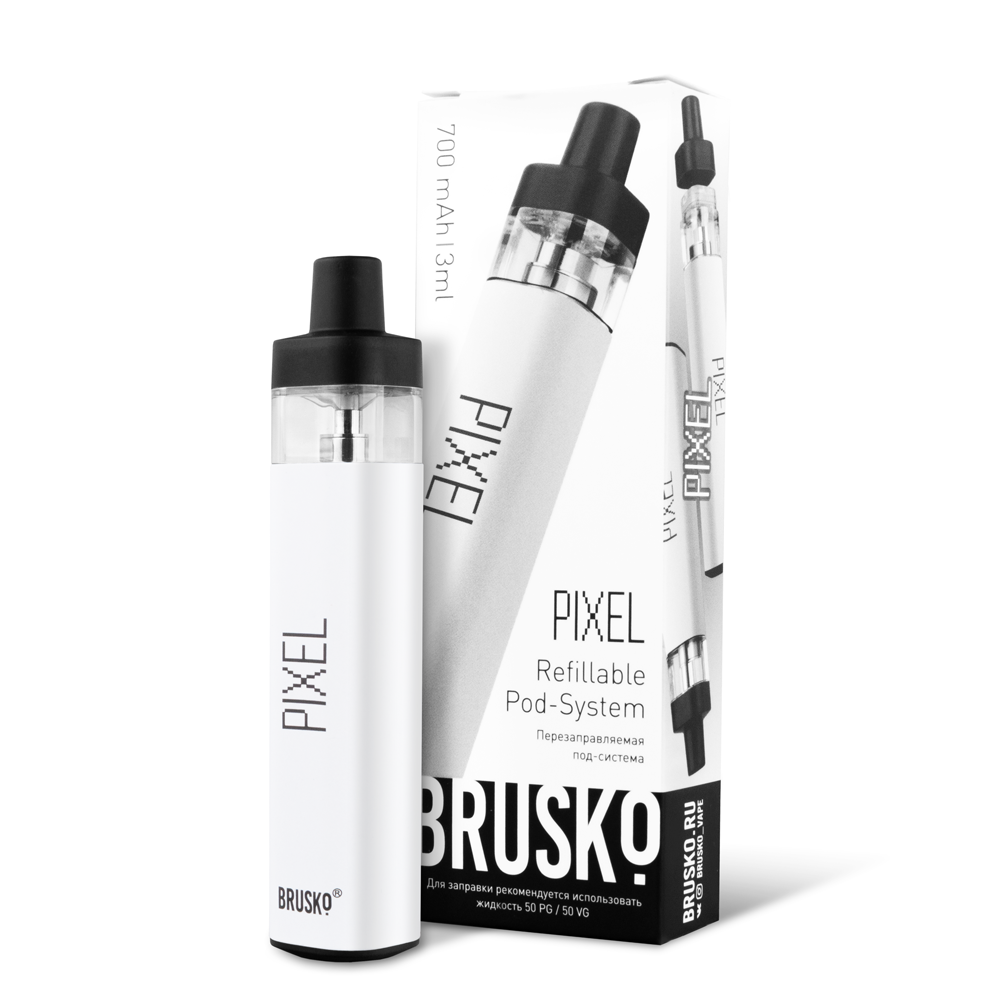 Перезаправляемая Под-Система Бруско Пиксель (Brusko Pixel) 700 mah, Белый - купить в Саках